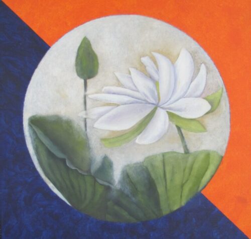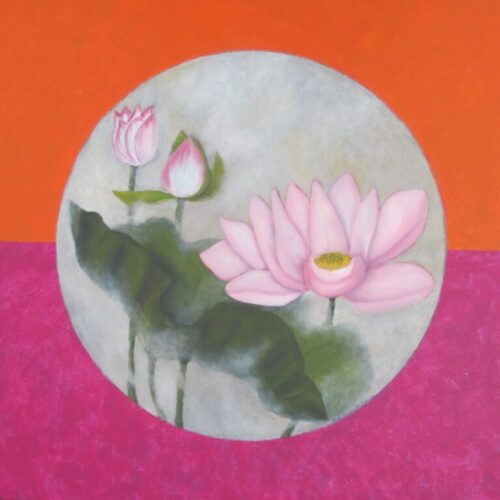 Pink Lotus Bindu, Acrylic and Oil on Canvas, 30x30x1.5″
